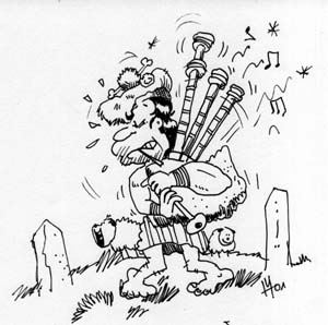 Die Tatsache, daß die Initialen der steinzeitlichen "Gewerkschaft Lärm, Pipe und Drum" mit denen der "German Lowland Pipes & Drums" identisch sind, hat wirklich nichts zu bedeuten: Es handelt sich hier um einen reinen Zufall. Ehrlich!