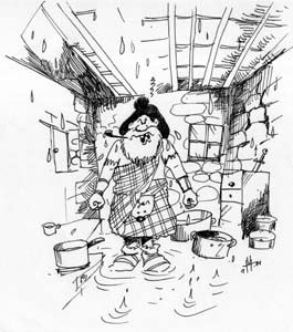 Allerdings zeigten die Drones heftige Tendenz, immer wieder von der Schulter abzurutschen. Dies war zwar lästig, aber unvermeidbar bis zu dem Tag, an dem seine Frau, Frau MacBag, wieder einmal einen Anfall von Putzwut bekam, die Pipes mit einer Schnur zusammenband und in die Ecke stellte. Das Problem war durch Zufall gelöst, für lange Zeit die "endgültige" Form der Pipes gefunden.