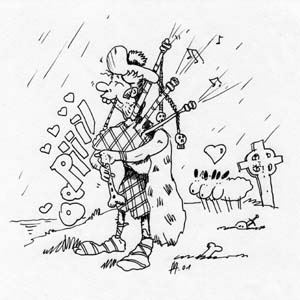 Der Dudelsack, oder zumindest dessen Vorstufe, wurde in der mittleren Steinzeit erfunden, als ein gewisser MacBag, seines Zeichens Schafhirte, bei der Arbeit feststellte, daß ein unter den Arm geklemmtes Schaf bei einem gewissen Druck ein interessantes Geräusch macht. MacBag nannte das neue Instrument zu Ehren seines Vaters "Bag".