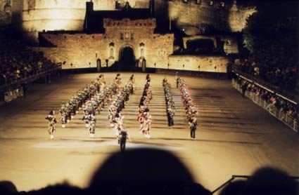 Und doch gibt es große Unterschiede: Während bei "Preußens Gloria" der Zapfenstreich als rein militärisches Ritual exekutiert wird, betrachten die Holländer ein Taptoe eher als Show - mit Marching Bands, spektakulären Effekten und allem Zipp und Zapp, der denkbar ist. Die Briten versuchen, zwischen diesen beiden Extremen die goldene Mitte einzuhalten: Hier halten sich militärisches Gepränge und Showeinlagen die Waage. Ich will versuchen, den Ablauf eines Tattoo am Beispiel des Edinburgh Military Tattoo zu beschreiben.