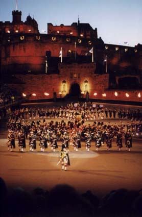Das Edinburgh Tattoo endet immer auf die gleiche Art und Weise: Die Zuschauer erheben sich und singen gemeinsam "Auld Lang Syne", die heimliche Nationalhymne Schottlands. Zum Zeichen der Verbundenheit werden die Arme vor der Brust überkreuzt und die Hände den Nachbarn gereicht: So bildet sich eine große Kette von Gleichgesinnten. Und dann steht auf den Zinnen der Burg ein "Lonely Piper", und eine leise Weise schwebt von oben in das Karree der Tribünen. Mit dem letzten Ton des Tunes fängt die obere Batterie an, aus allen Rohren zu feuern, und an den Wochenenden ist dies die Einleitung zu einem grandiosen Feuerwerk, das nach einer kleinen Kunstpause den Himmel über dem Castle erhellt.
